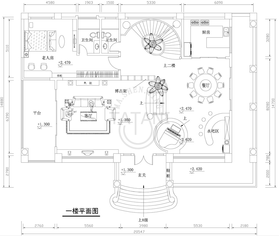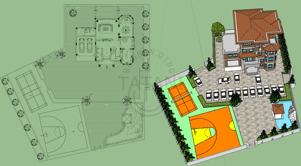 關(guān)于別墅,什么是別墅,國內(nèi)國外是有區(qū)別的,在國外只要自己擁有的是一整棟就是別墅,在國內(nèi)最開始來自開發(fā)商,獨棟、甚至連排的商品建筑,叫別墅,后來自建房參考了其設(shè)計,或者設(shè)計者加入設(shè)計后,在大家眼里也成了別墅,所以除了獨棟外,只要看起來‘像別墅’就是別墅;現(xiàn)在什么是別墅,什么是民房主要是看設(shè)計的是否豪華,所以現(xiàn)在‘有錢人’的大多叫做別墅,普通人的則沒這樣叫;主要是檔次上和用詞上的問題,不用多久用詞也會跟上國外,只要獨棟就可以叫做別墅;但現(xiàn)在在國內(nèi)設(shè)計民用建筑時叫法是有區(qū)別的,自建住宅建筑的一般可分為,民宅(民樓)、別墅(花園式)、別院; 民宅(民樓):主要是不重視外觀花園(應(yīng)該說是院子),著重保持很多傳統(tǒng)的建筑觀念;別墅則重視外觀及花園;檔次最高的是別院;占地也最大,與別墅的區(qū)別是除了主建筑,還有很多附建筑,通過花園或者走廊,把這些建筑串連在一起,充分利用花園,把生活范圍擴到主建筑以外,圍墻以內(nèi),因為所有建筑都是組合體,不能說主建筑就是別墅,所以我把它說成是別院;當(dāng)然非傳統(tǒng)的所說的主屋以外不常住房子,因為以前‘別院’這東西,現(xiàn)在也叫別墅;屬于別墅類似的用詞,因為土地限制等關(guān)系,自建別墅除了要在國土部門所限制的紅線圖內(nèi),要在地區(qū)限高以內(nèi),還要熟悉或會建筑設(shè)計,因為自建別墅,是由一塊‘平地’開始的,另外設(shè)計還要著重考慮安全、隱私、供排系統(tǒng)的處理,及地區(qū)性風(fēng)俗習(xí)慣和風(fēng)水知識;下面以個人以往從一塊地開始設(shè)計建筑,及設(shè)計室內(nèi)裝飾的部分自建別墅建筑作為例子,當(dāng)然個人非工民建或建筑結(jié)構(gòu)設(shè)計師,梁柱等,如果業(yè)主不請建筑公司的話,我會重新以自己的經(jīng)驗,與我們的建造師協(xié)調(diào)去設(shè)計,方案圖則是對外的為的是保護自己的權(quán)益,所以方案設(shè)計不加這個; |